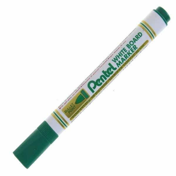 Pentel Marqueur pour tableau blanc MW85, pointe ogive, vert épaisseur du tracé: 2,0 mm, de forme mince, corps en plastique avec capuchon anguleux, effaçable à sec, couleur du corps: blanc (MW85-D, MW85-DE)